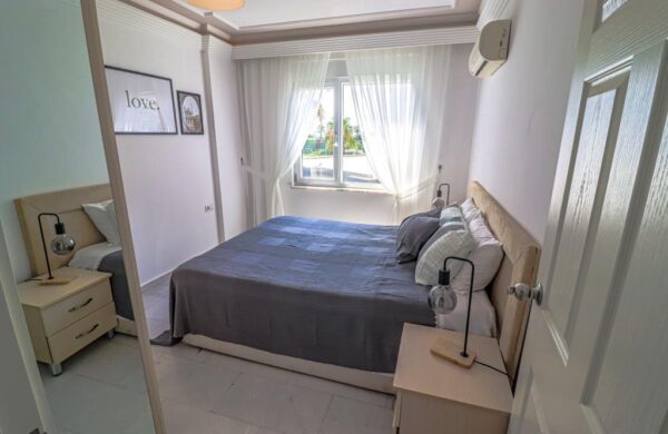 – This apartment has its location only 20 m from the beach, 6 km to Alanya city center, 36 km from the Alanya-Gazipaşa Airport, and 136 km from Antalya Airport. With proximity to a variety of social facilities in the neighborhood such as shops, markets, restaurants, cafes, banks, pharmacies, and much more. This apartment is located in a very comfortable and luxurious residential complex which offers many amenities such as a Fitness center, Sauna, massage room, Turkish bath, a cafe with a cozy library, an outdoor swimming pool with kids pool, poolside bar, and water slides. As well as a well-kept green garden with walking paths, BBQ areas, sitting areas, and a children’s playground. There is a tennis court, an underpass to the beach, a car parking plot, security service, a central satellite system, a power generator, caretaker service, and elevator access in the complex.